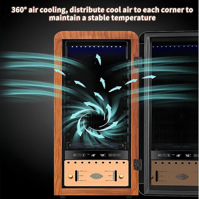 Whether you are aging rare cigars long-term or keeping your daily selections ready to enjoy, this Electronic Cigar Humidor Cabinet with Independent Temperature and Humidity Control delivers professional-grade performance, reliability, and style. Elevate your cigar storage experience and protect your investment with a precision-engineered humidor cabinet built for true connoisseurs.